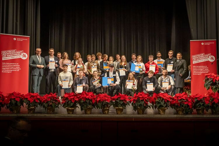 Alle erfolgreichen Teilnehmerinnen und Teilnehmer und ihre Ausbildungsbetriebe ehrte die Handwerkskammer Reutlingen am 9. Dezember in der Festhalle Rottenburg.