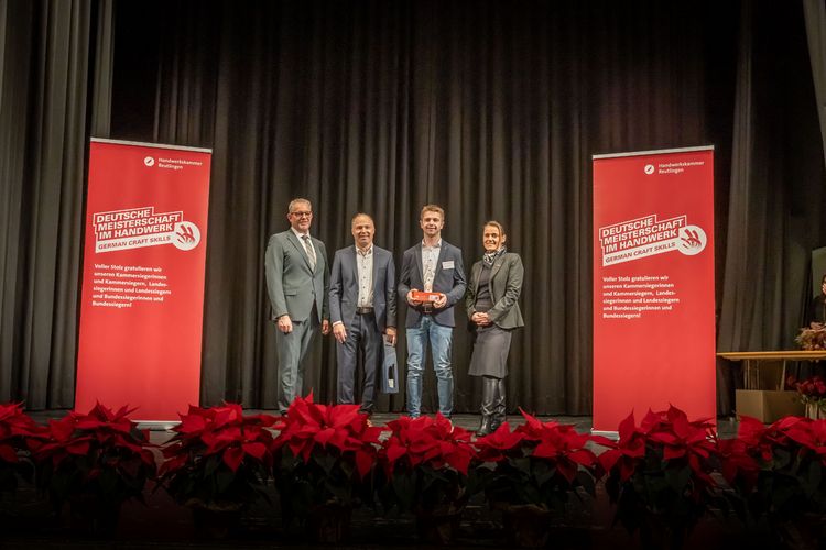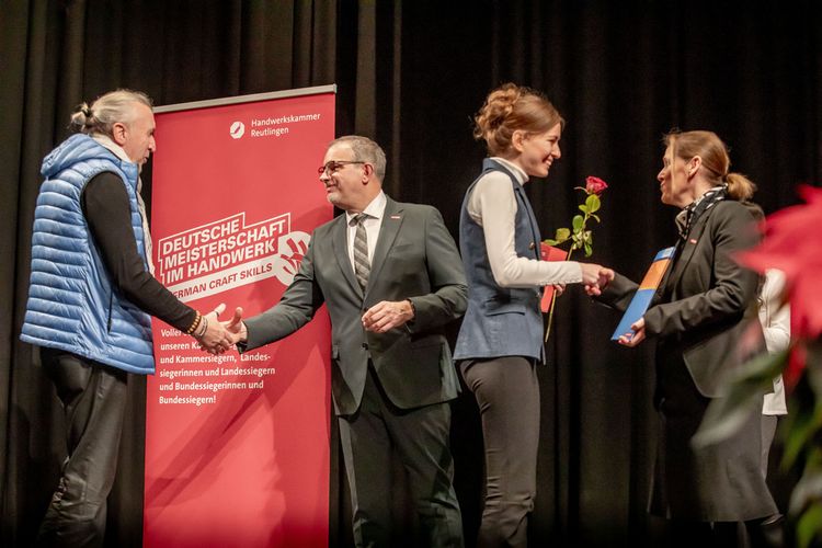 Die Friseurin Noemi Bühler aus Ammerbuch, die Maßschneiderinn Julia Gutsche aus Albstadt und der Präzisionswerkzeugmachaniker Tim Nico Ulmer aus Burladingen sicherten sich den zweiten Platz. Auf Rang drei landete die Zahntechnikerin Hanna Debora Maisch aus Neuffen. Im Gestaltungswettbewerb „Die gute Form – Handwerker gestalten“ erreichten zudem der Parkettleger Cedrik Rempfer aus Mössingen und die Sattlerin Sofia Mey aus Oberndorf am Neckar den ersten Platz. Zweite Plätze gingen an die Buchbinderin Christiane Albrecht aus Göttingen und die Holzbildhauerin Annika Hader., der dritte Preis ging wiederum an die Maßschneiderin Julia Gutsche aus Albstadt. Dieses starke Abschneiden zeigt eindrucksvoll: Der handwerkliche Nachwuchs aus dem Kammerbezirk gehört bundesweit zur Spitze.
