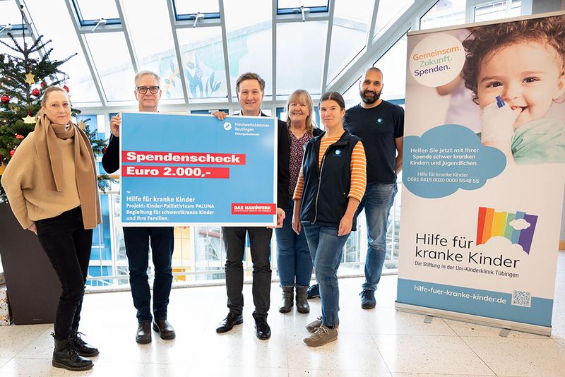 Stattdessen unterstützen die Mitarbeiter die Palliativbegleitung PALUNA der Universitätsklinik für Kinder- und Jugendmedizin in Tübingen mit 2.000 Euro. PALUNA ist ein Teilprojekt der Stiftung „Hilfe für kranke Kinder“, die Kinder mit schweren Erkrankungen und deren Familien in allen Lebensbereichen begleitet. Dazu gehören finanzielle Hilfen, Beratung und Schulung für Eltern und Angehörige, die Unterstützung in allen Behandlungsfragen bis hin zur Palliativbegleitung. Mit dabei sind Eltern- und Fördervereine der Kinderklinik und mit ihnen zahlreiche Spenderinnen und Unterstützer.