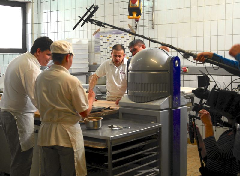 Action in der Backstube: Zwei ZDF-Teams drehten in der Wurmlinger Bäckerei.